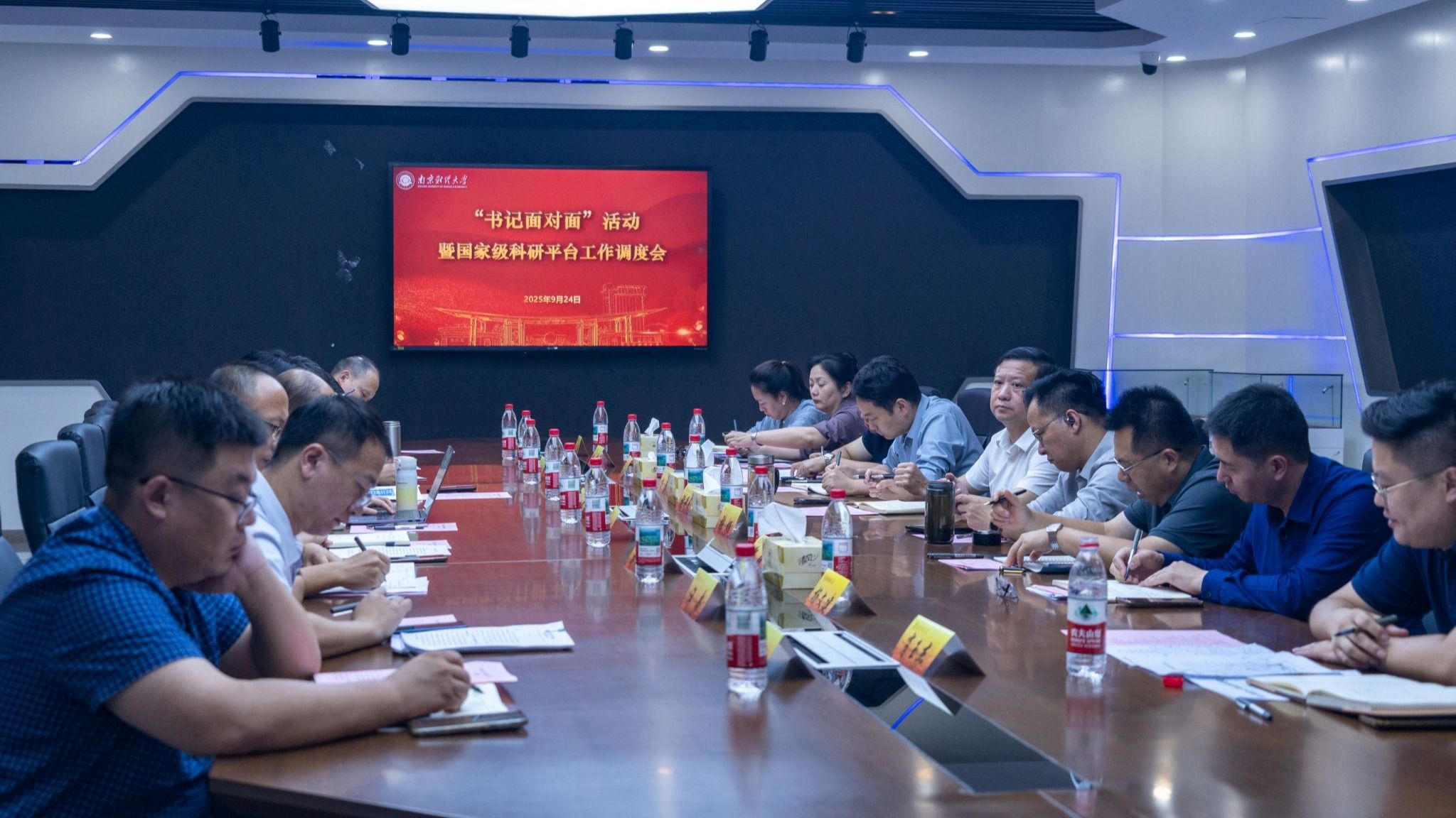 9月24日下午,校党委书记张利民在仙林校区德业楼211会议室参加“书记面对面”活动暨国家级科研平台工作调度会。副校长张炳,党委常委、副校长方勇,相关单位负责人参加会议。