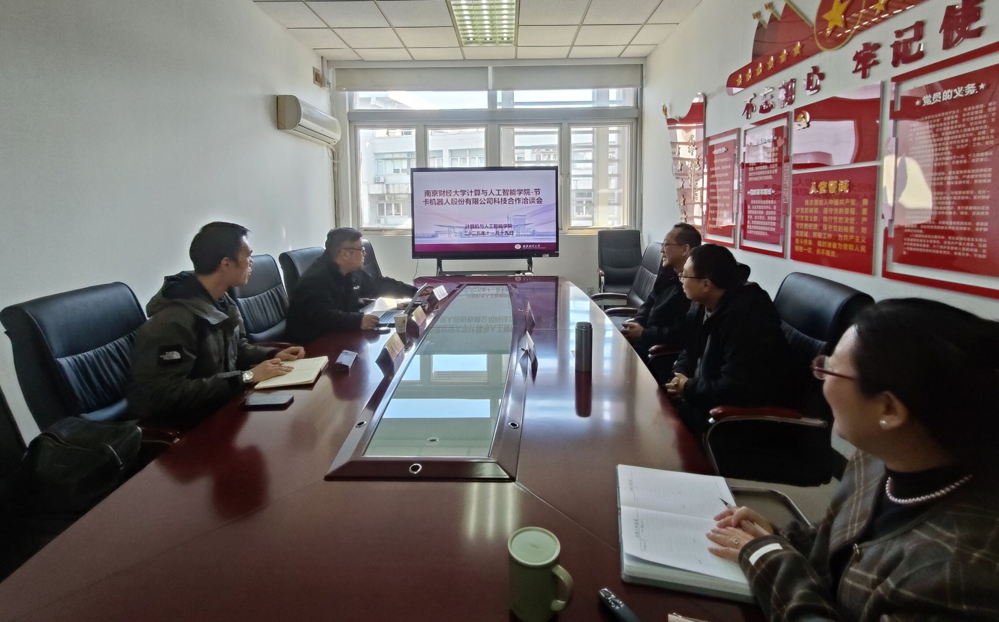 张阳军书记对杨卓副总裁一行到访表示热烈欢迎,详细介绍了学院在学科建设、人才培养、科学研究以及国家级实验室平台等方面的优势。张书记表示,学院可以结合我校粮食特色,与节卡机器人公司携手在电子商务领域物流技术信息化、智慧粮仓信息化等关键技术领域展开合作,深化协同创新。毛波副院长详细阐述了学院科研优势,并表示双方可以通过共享实验平台、联合申报国家级科研项目、共同发表高水平论文等形式,共同培育具有国际竞争力的创新成果。