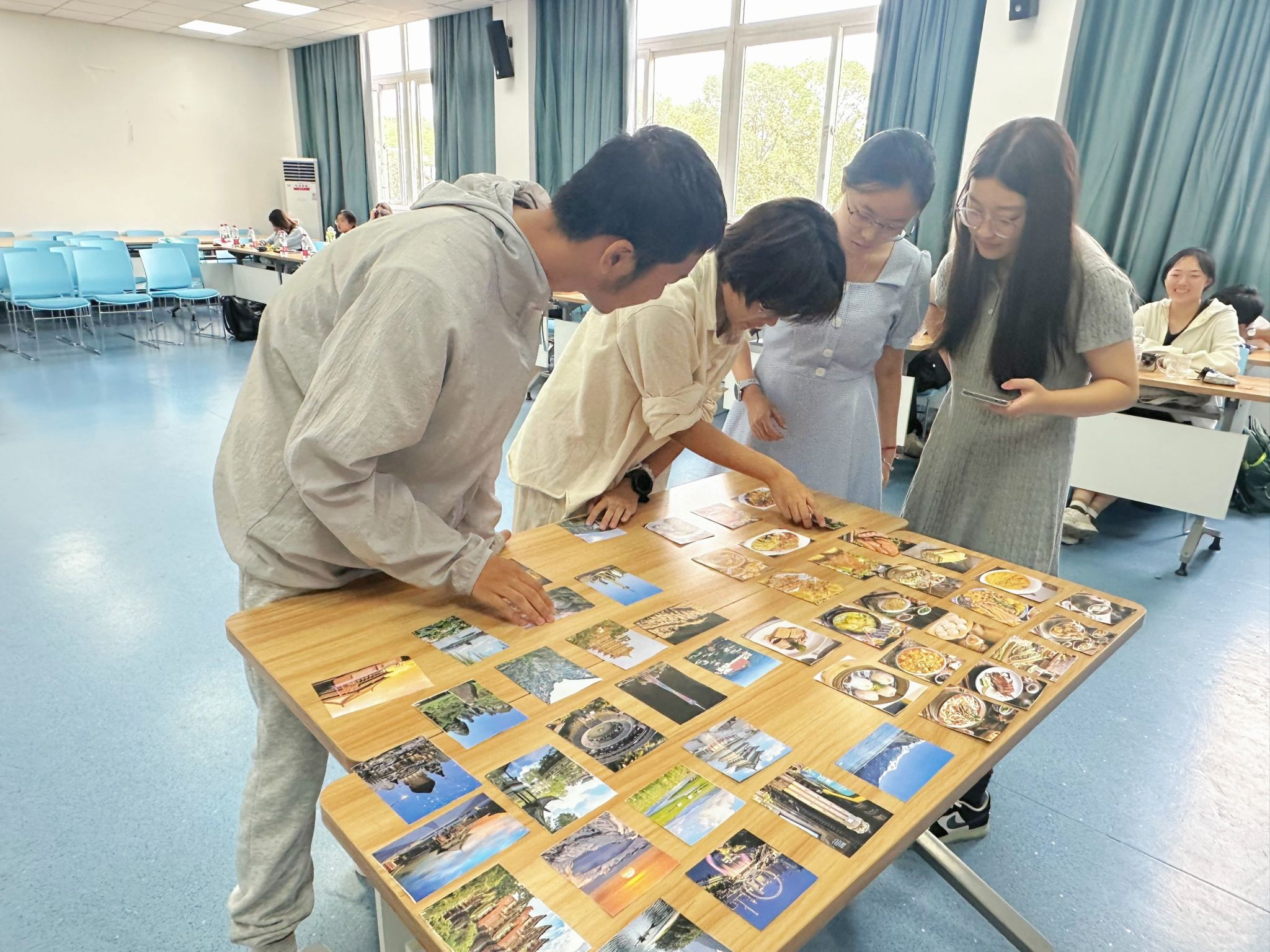 最富有趣味的是“省份拼图”团队协作挑战环节。同学们被分为若干小组,各小组成员需通力合作,将写有省份、地标建筑与特色美食的零散卡片进行正确匹配。现场气氛紧张而热烈,队员们热烈讨论着“安徽对应的是黄山还是徽州古建筑?”,最终,率先完成5组正确匹配的小组欢呼雀跃、赢得胜利。该环节寓教于乐,不仅考验了同学们的地理文化知识,更在协作中深化了对祖国辽阔疆域与多元文化的认同感。