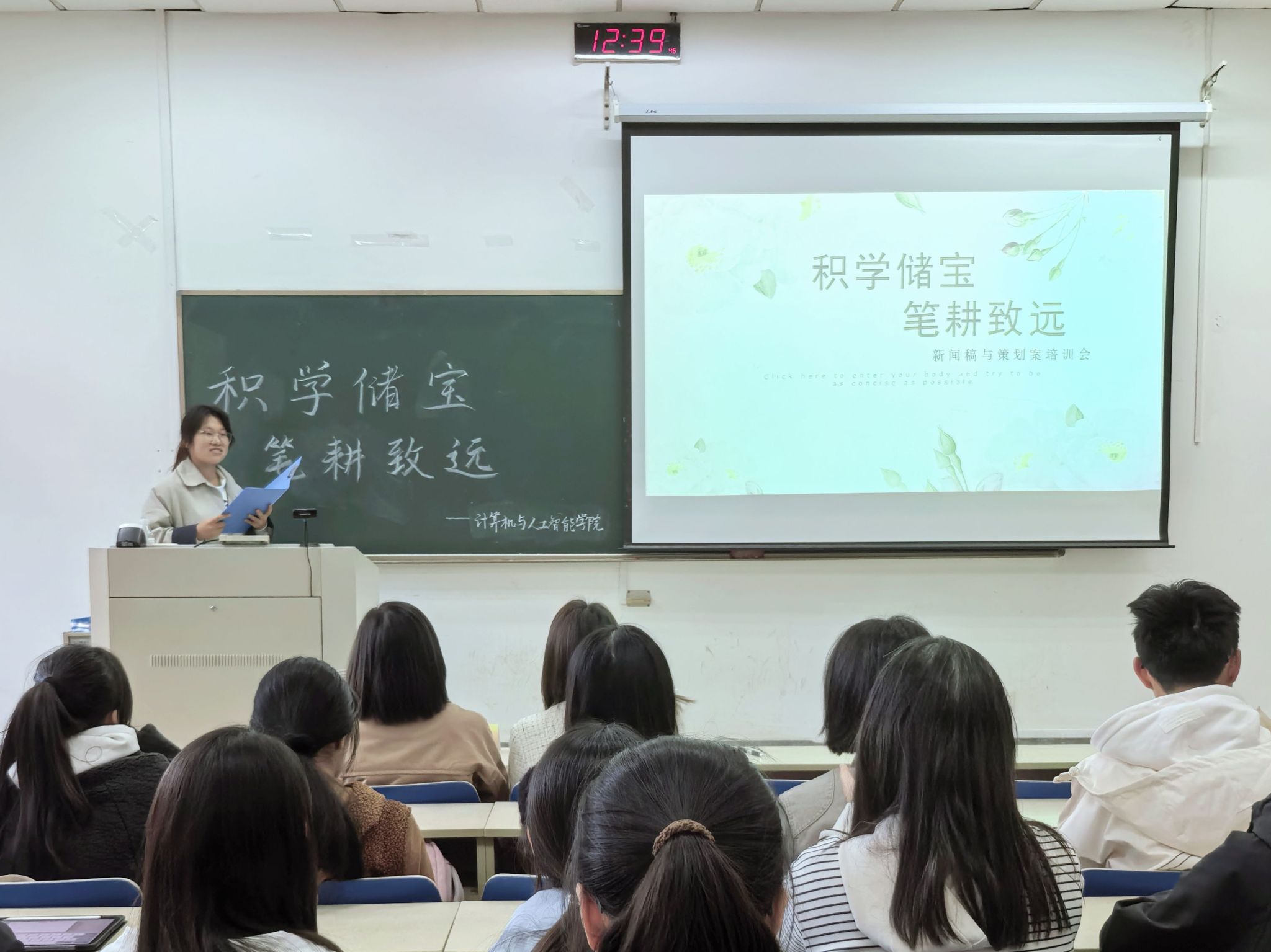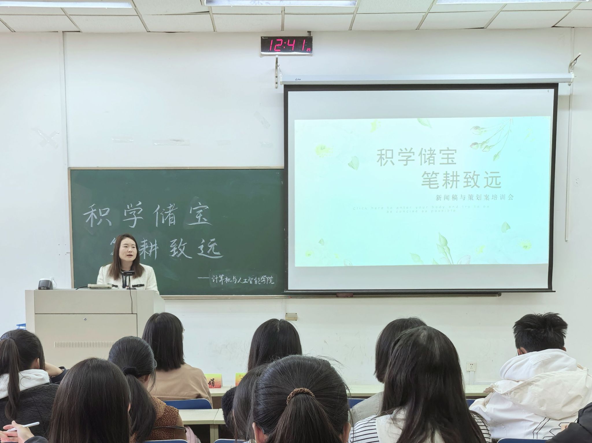 于10月22日在专四108教室举办了以“积学储宝,笔耕致远”为主题的新闻稿与策划案培训会。培训会特邀校党委宣传部ag真人主任施卫娟老师主讲,AG真人