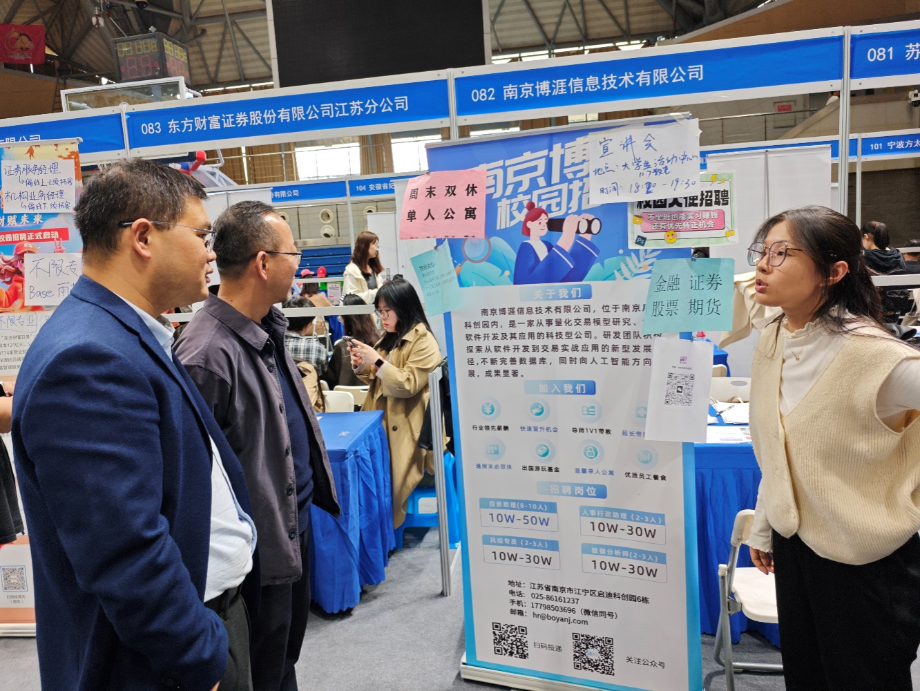 为深入贯彻落实教育部关于高校毕业生就业工作的决策部署和学校关于深入开展 2026 届毕业生有组织访企拓岗专项行动的实施方案精神,深化产教融合与校企合作,拓展毕业生就业渠道,深化校企合作,10月31日下午,学院党委书记张阳军、副书记马健带领辅导员老师们前往体育馆篮球馆主馆的第二场秋季校园招聘会现场,开展访企拓岗促就业行动。