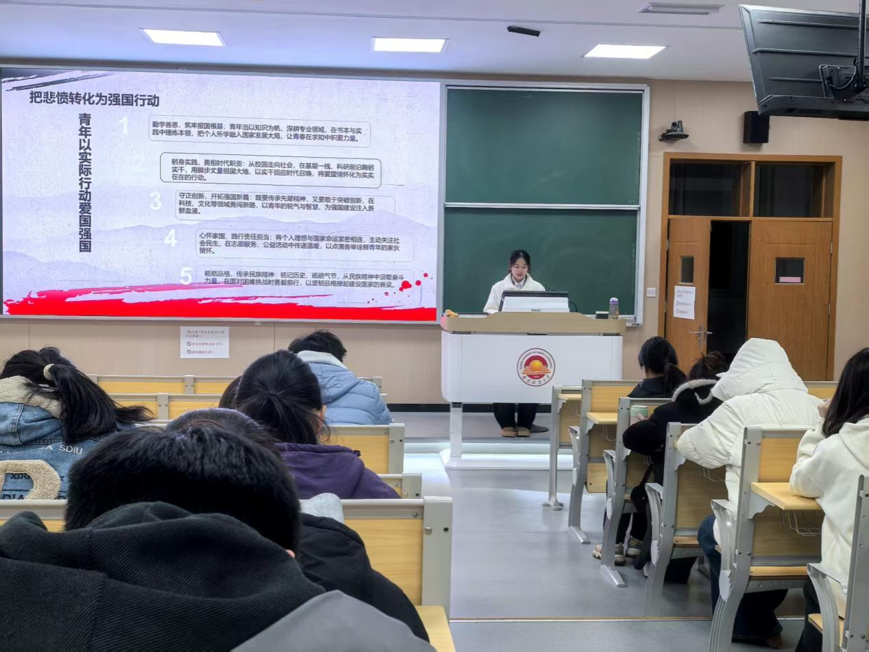 于博观楼201教室举办“松柏傲苍穹,明月祭英魂”国家公祭日主题团课,学院众多青年学生参加。活动现场庄严肃穆,秩序井然,展现出青年一代对历史的敬畏与对国家的赤诚。