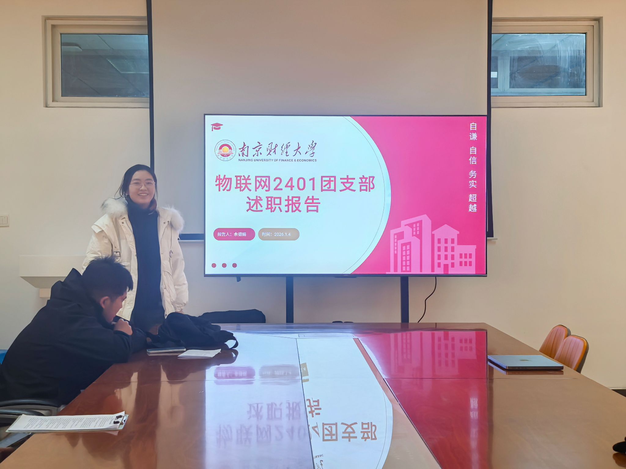 物联网2401班团支部书记余德娟进行述职