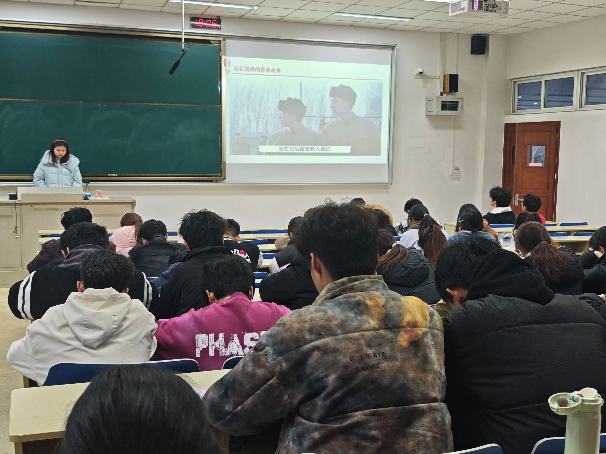 在事迹重温环节,现场播放了雷锋同志生平事迹短片及当代青年志愿服务纪实影像。雷锋同志在平凡岗位上敬业奉献、助人为乐的点滴故事,配合当前青年志愿者扎根基层、服务社会的真实案例,使同学们深刻感受到雷锋精神穿越时空的感召力,更加深入理解了“伟大出自平凡,平凡造就伟大”的深刻意涵。