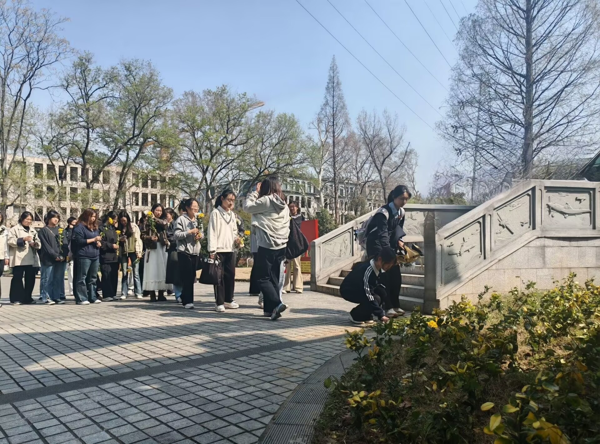 同学们祭奠献花