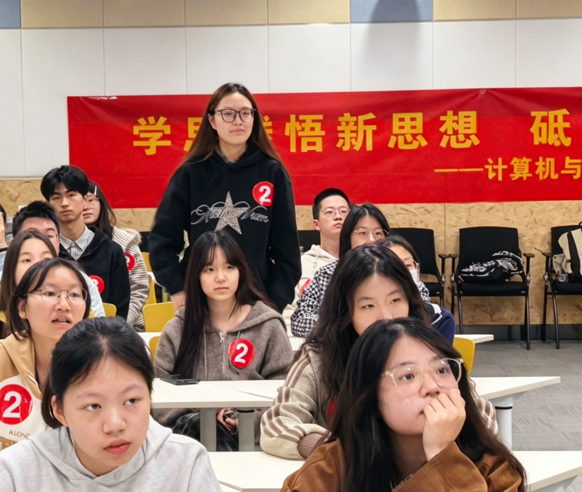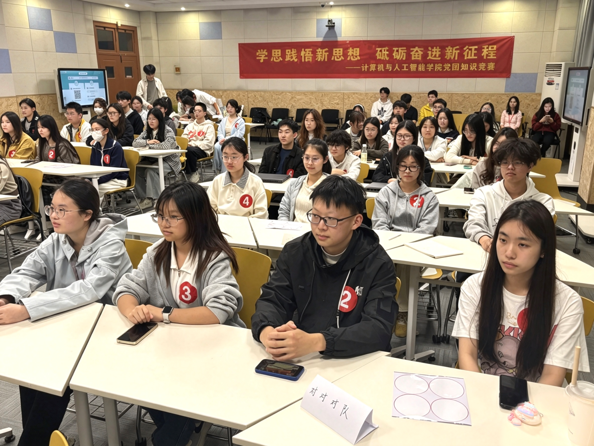 团委主办的“学思践悟新思想,砥砺奋进新征程”党团知识竞赛在博文楼101教室顺利举办。学院各年级团干部带领团员青年同台竞技、智慧交锋,以协作凝聚合力、以理论彰显素养,充分展现新时代人工智能学子昂扬向上的青春风貌,带来一场内涵深厚、精彩纷呈的红色理论盛宴。